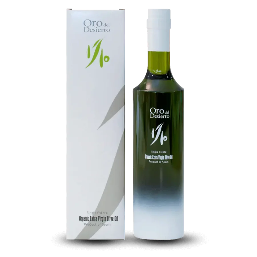 Oro del Desierton erityinen 1/10-luomuoliiviöljy valmistetaan Arbequina- ja Piqual -lajikkeiden oliiveista. Oliivit kerätään Euroopan ainoalta todelliselta aavikolta, Tabernasin aavikolla Almeríassa sijaitsevalta oliivitarhalta.