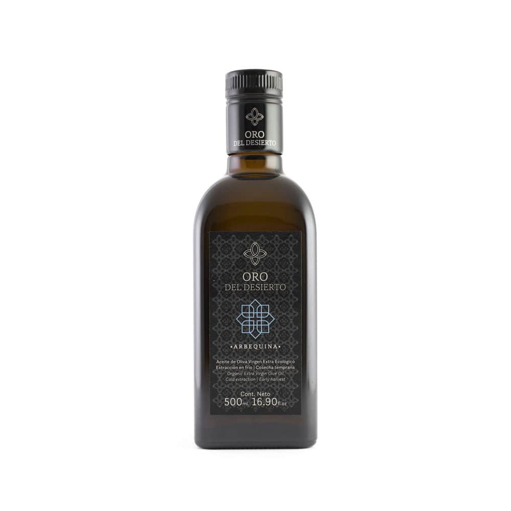 Oro del Desierton Arbequina-luomuoliiviöljy valmistetaan ainoastaan Arbequina-lajikkeen oliiveista.