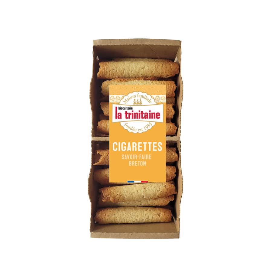 Cigarette-keksit syntyivät alkujaan vahingossa, kun leipuri Lucian Petit’lle sattui virhe yhdessä reseptissään. Jottei hän joutuisi heittämään taikinaa pois, hän päätti kääräistä keksin rullalle ja näin syntyivät cigarette-keksit. Kekseistä tuli paikallisen pienen leipomon hittituote ja on ylläpitänyt suosiotaan vuosien saatossa. Reseptissä ei ole nähty paljoa muutosta alkuperäisestä, ja tämä herkku on edelleen yksi la Trinitainen erikoisuuksista.