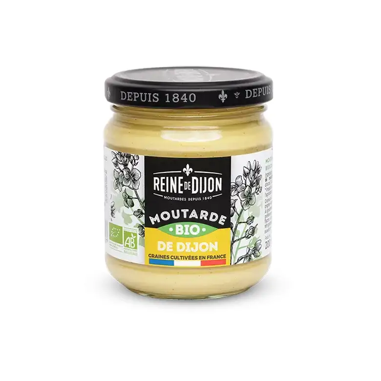 Ranskalaisen Reine de Dijonin perinteinen karkea luomudijoninsinappi on valmistettu perinteiseen tapaan ilman keinotekoisia aromeja tai säilöntäaineita. Sen kaikki ainesosat ovat luomutuotantoa ja parasta mahdollista laatua. Kokeile sellaisenaan esimerkiksi lihan päällä tai maustamaan salaatinkastikkeet, marinadit tai suolaisten piiraiden täytteet.