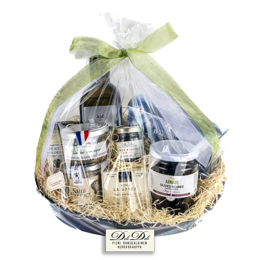 Andalusian aavikkomaisella alueella kasvatetaan oliivipuita, joista saadaan moneen kertaan palkittua Oro Del Desierto extra virgin oliiviöljyä. Etelä-Ranskasta tulee timjamilla maustettuja mustia ryppyoliiveja ja Cahorin alueelta huippusuosittu tryffelimajoneesi, jota kannattaa kokeilla lihan lisäksi mm. lämminsavulohen kanssa. Läheltä Bordeaux:ta tulevat parhaat pateet, pieni maistiainen kunnon ranskalaista maalaispateeta ja kampasimpukka kalaherkku. Juustojen kanssa viikunahillo ja pieneksi suolaiseksi kivan juoman seuraksi löytyy vuohenjuustolevite, jossa mausteena savustettu paprika.