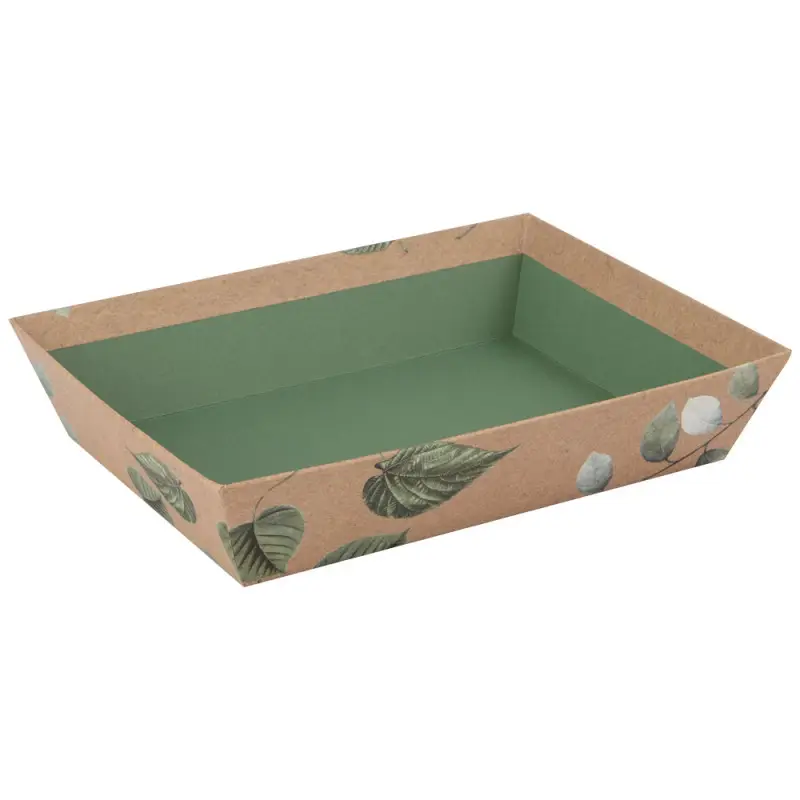 KORI kartonkitarjotin ruskea lehtikuvio 27x20x5cm