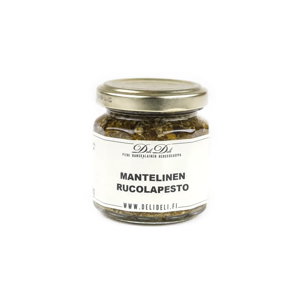 DeliDelin oma mantelinen rukolapesto on herkullinen versio tutusta vihreästä pestosta. Se on valmistettu Ranskassa vain laadukkaista ja luonnollisista raaka-aineista. Peston rakenne on sopivan rouheinen, ja se sopiikin pastan lisäksi loistavasti myös sellaisenaan esimerkiksi leivän päälle aperitiivina. Kokeile pestoa myös kesäisessä salaatissa tai kalan päällä.