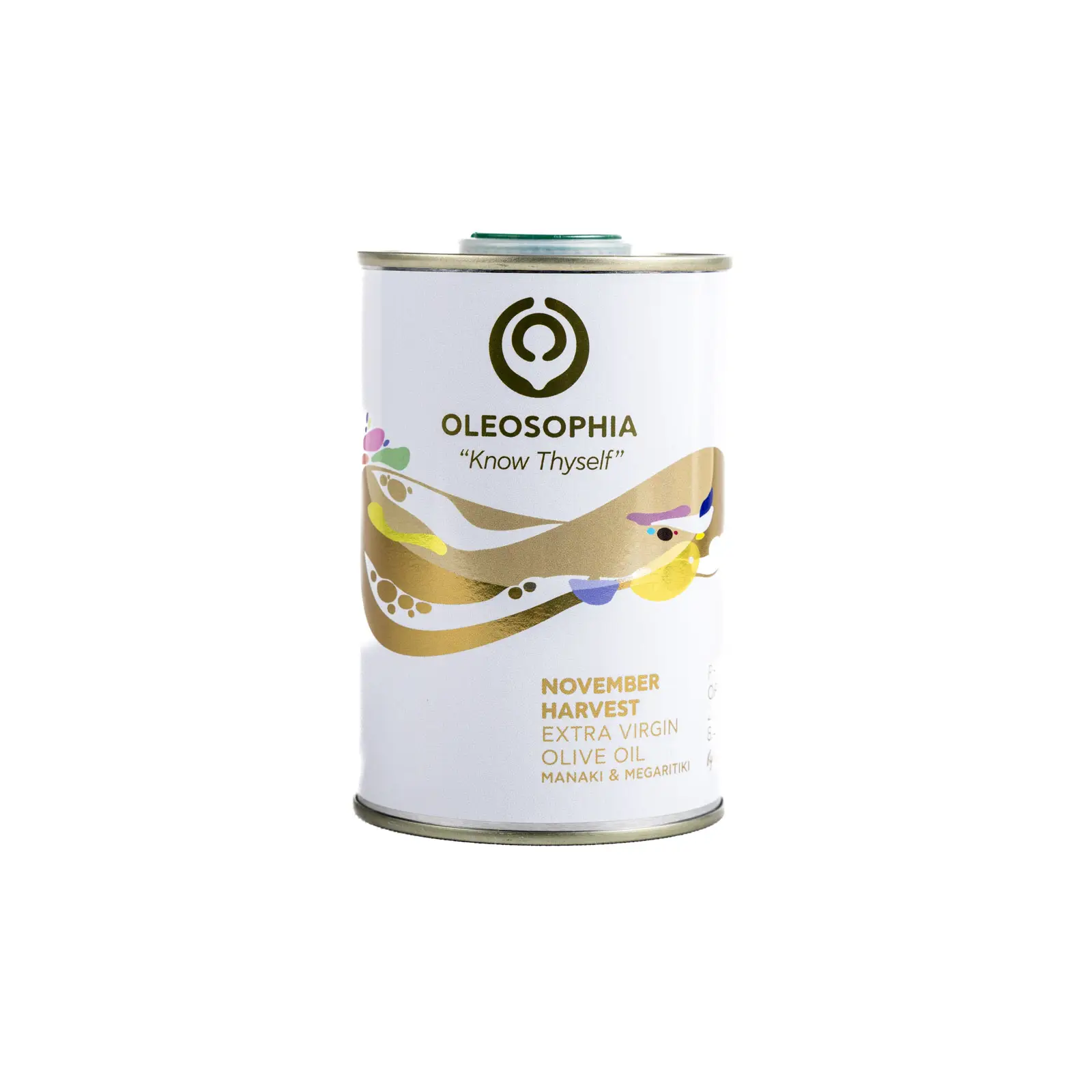 Oleosophian November Harvest on ainutlaatuinen kahden kreikkalaisen lajikkeen sekoitus, joka yhdistää Manaki- ja Megaritiki-oliivien parhaat ominaisuudet. Tämä extra virgin oliiviöljy on valmistettu Korintin alueella sijaitsevan Oleosophia-perheen omassa oliivitarhassa käsin poiduista oliiveista. Sadonkorjuuaika lokakuusta marraskuun puoliväliin takaa optimaalisen tasapainon hedelmäisyyden ja ravitsemuksellisten arvojen välillä.