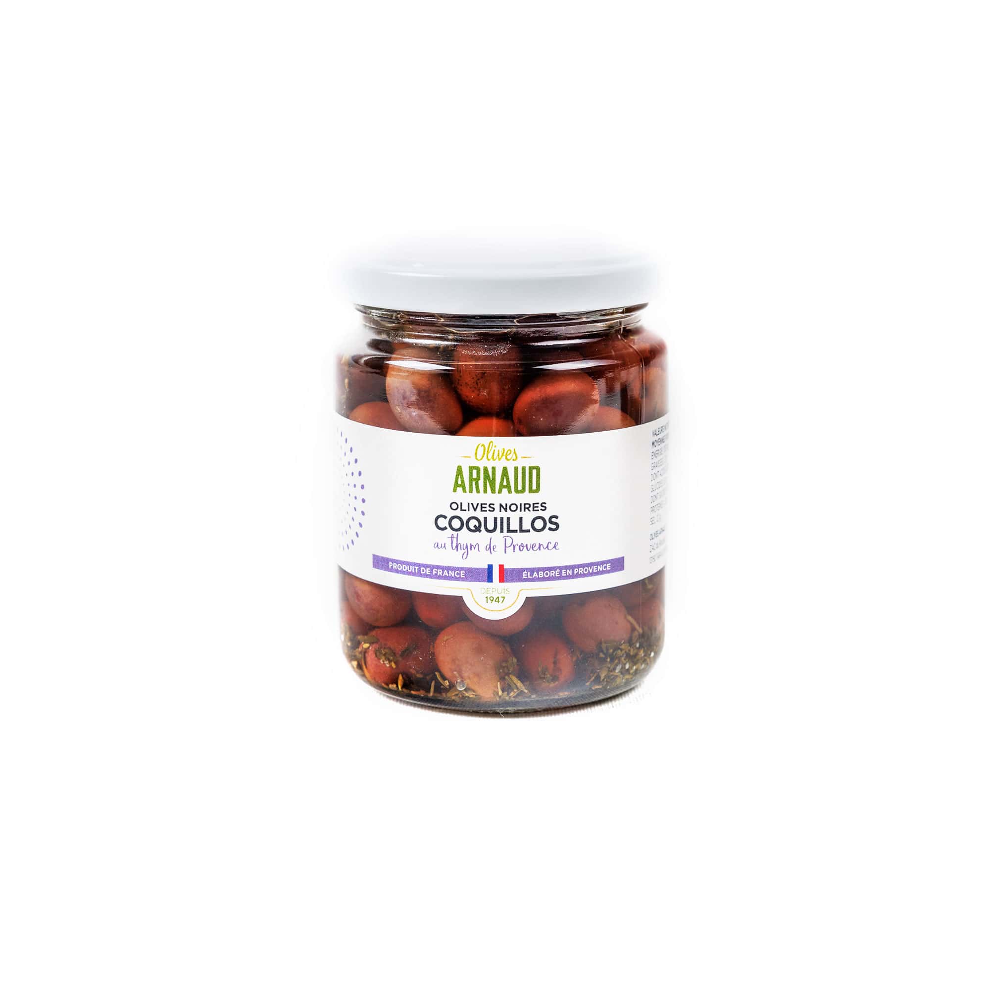 Olives Arnaud’n Nizzan oliivit ovat tumman violetteja, pieniä Coquillos-lajikkeen oliiveja, jotka poimitaan täysin kypsinä. Poimimisen jälkeen niiden annetaan kypsyä suolaliemessä lähes vuoden ajan.