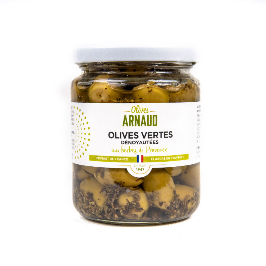 Provencelaisen Olives Arnaud’n vihreät kivettömät oliivit ovat vähäsuolaisia ja maustettu Provencen yrteillä. Oliivit on säilötty auringonkukkaöljyyn. Tässä on todellinen herkkutuote oliivien ystäville!