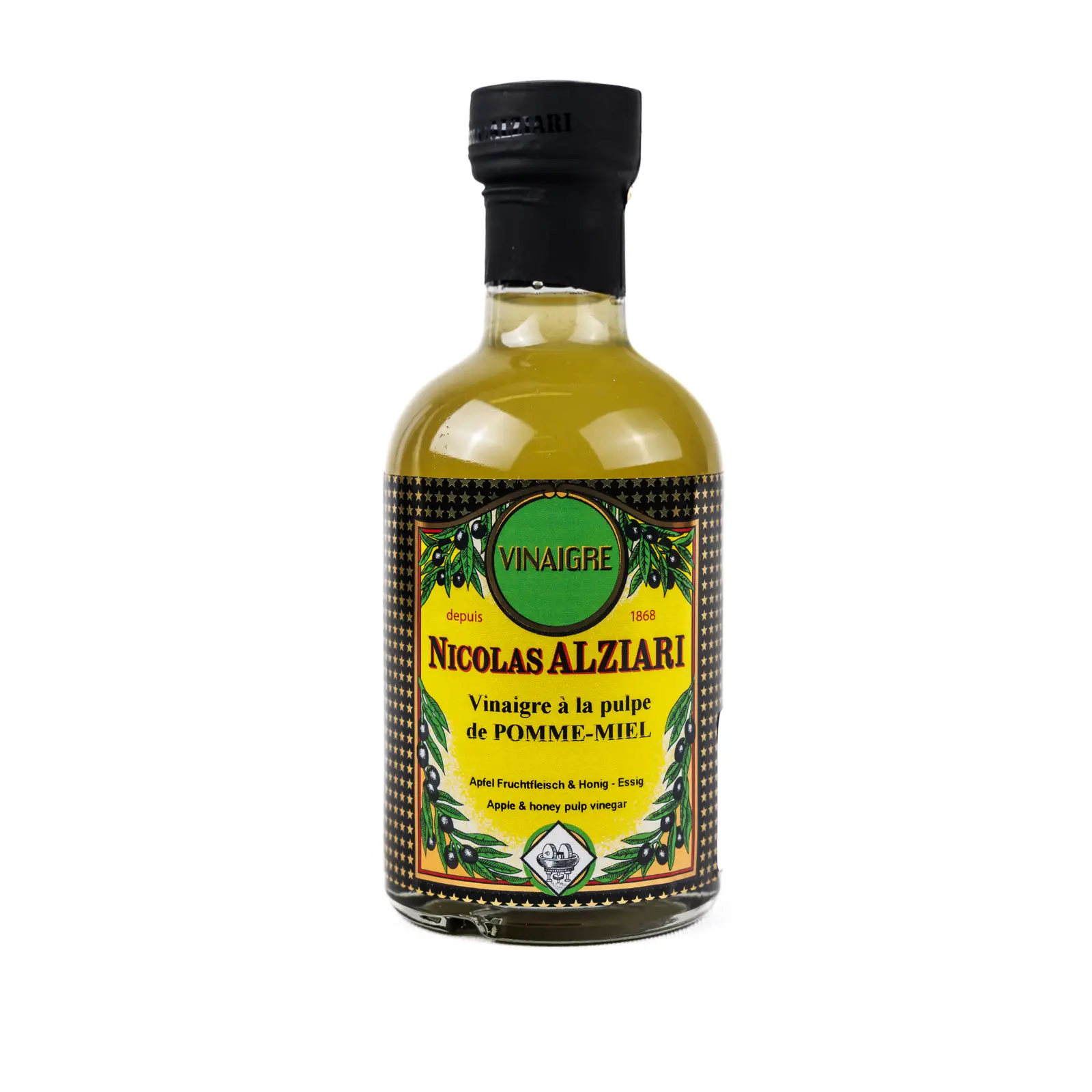 Ranskalaisen La Maison Alziarin omena-hunajaetikka on raikas ja sopivan hapokas maustettu etikka. Lempeä hunaja pyöristää omenan hapokkuutta, mikä tekee etikasta täydellisen salaatinkastikkeisiin, foie gras’n maustamiseen, porsaanlihalle sekä mereneläville.