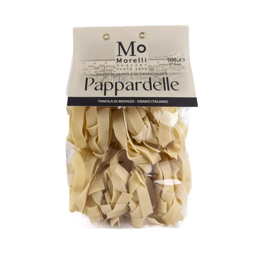 Pappardelle on perinteinen Toscanasta kotoisin oleva hyvin leveä nauhamainen pastalaji, joka sopii loistavasti erilaisten kastikkeiden kanssa. Toscanalainen Morellin perinteinen pastatehdas valmistaa pappardelle-pastansa durumvehnäjauhoista, joissa on käytetty mukana vehnänalkiota. Keittoaika 5–6 minuuttia