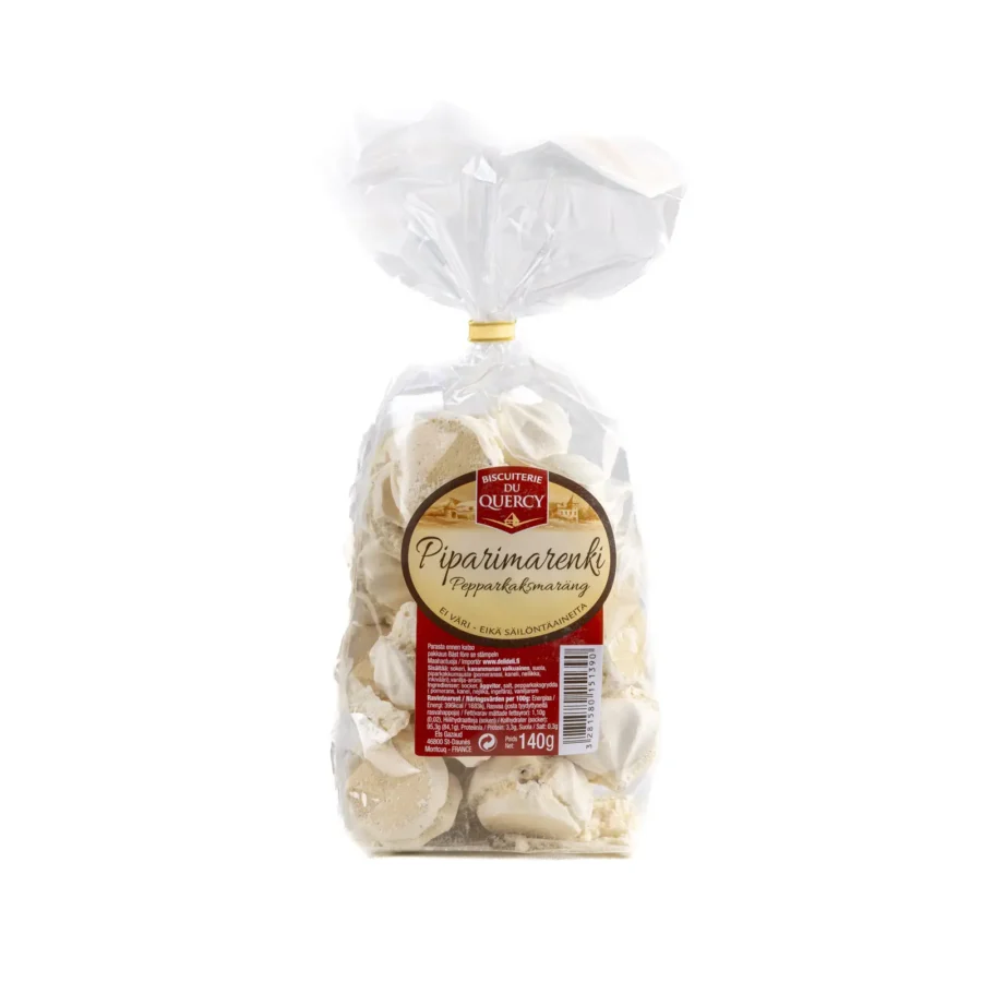 Piparimarenki on Biscuiterie du Quercyn DeliDelille valmistama erikoisuus, joka on saatavilla kaupastamme ainoastaan joulunaikaan. Nämä piparkakkumausteella maustetut marengit ovat sisältä ihanan pehmeitä ja sitkoisia ja ulkoa sopivan rapeita. Tarjoa sellaisenaan tai kokeile jonkin jouluisen jälkiruoan pohjana!