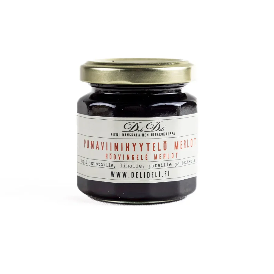 Merlot-punaviinihyytelö on ranskalainen käsityötuote, joka on valmistettu laadukkaasta Merlot-punaviinistä. Hyytelö on monipuolinen tuote, joka sopii juustojen, lihojen ja hanhenmaksan seuralaiseksi.