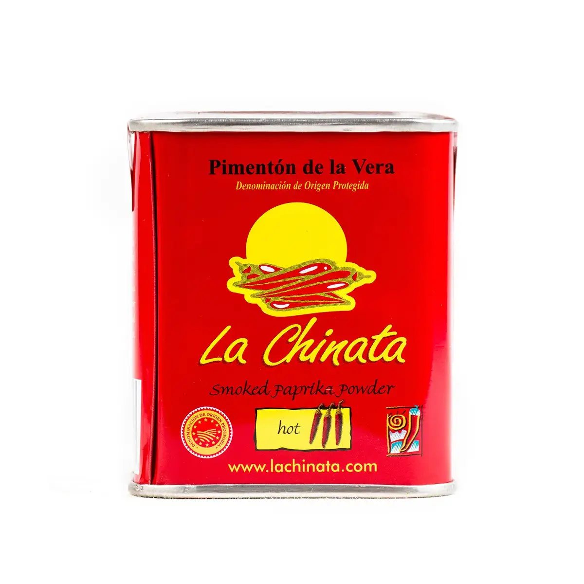 La Chinatan savustettu chilipaprikajauhe ”picante” on tulinen ja aromaattinen savustettu chilipaprikajauhe. Kyseessä on paikallinen Pimentón de La Vera -sekoitus, ja tuotteella on sen alkuperän todistava sertifikaatti. Pimentón de la Vera -paprikajauhetta on kolmea eri varianttia: picante, dulce ja agridulce eli tulinen, makea ja happaman makea. Tyylikästä ja pirteän punaista peltipurkkia on helppo käyttää, ja sen jättää mielellään koristamaan keittiön maustehyllyä.