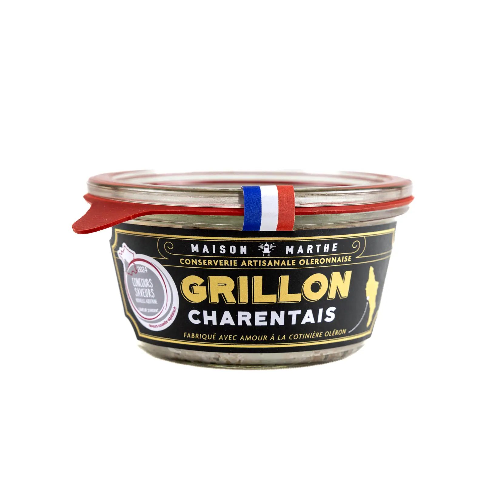 Grillon charentais eroaa tavallisista rillieteista suurempien lihapalojensa ansiosta. Tuotteessa on 76% ranskalaista sianlapaa ja -rintaa sekä 19% sianrasvaa, mikä takaa täyteläisen ja mehevän rakenteen. Mauste on yksinkertainen mutta tehokas: valkosipuli, timjami, muskottipähkinä ja mustapippuri.