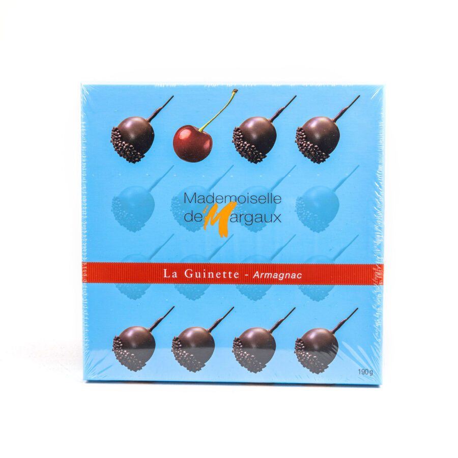 Mademoiselle de Margaux on tunnetun Bordeaux-viinin valmistajan, Château de Margaux’n, naapurissa sijaitseva suklaavalmistaja. Mademoiselle de Margaux’n yksi klassikoista on armanjakissa säilötyt ja tummaan suklaaseen kastetut Guinette-kirsikat. Tarkkaan valikoidun armanjakin, raikkaiden kirsikoiden ja laadukkaan tumman suklaan yhdistelmä takaa tälle herkulle upean makuyhdistelmän ja suussa sulavan rakenteen, joka kelpaa vaativimmillekin herkkusuille.