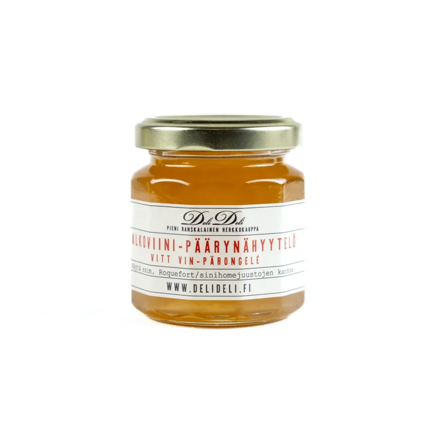 DeliDelin valkoviini- & päärynähyytelö valmistetaan perinteisistä ranskalaisista raaka-aineista käsityönä ilman turhia lisä- tai säilöntäaineita. Päärynän ja sinihomejuuston yhdistelmä on täydellinen niin piiraissa kuin salaateissa, ja nyt makuyhdistelmä on helppo toteuttaa sellaisenaan nautittavan roquefort- tai muiden sinihomejuustojen ja valkoviini- & päärynähyytelön kanssa. Hyytelön valkoviinipohja täydentää makuelämyksen. Kokeile hyytelöä myös erilaisten valkoisten kalojen kanssa!
