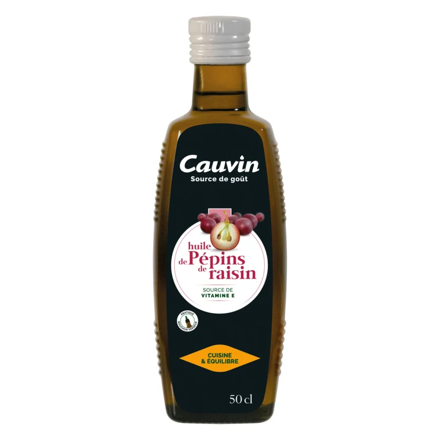 Viinirypäleensiemenöljy kestää hyvin korkeita lämpötiloja, joten se on mitä parhain öljy paistamiseen. Ranskalaisen Huilerie Cauvinin viinirypäleensiemenöljy sisältää paljon hyviä rasvahappoja, ja siksi se on luonnollinen osa terveellistä ruokavaliota.